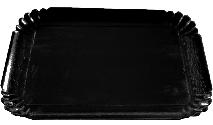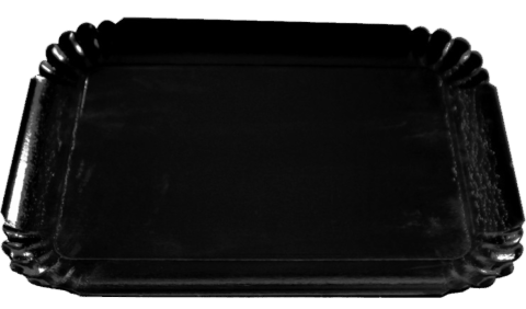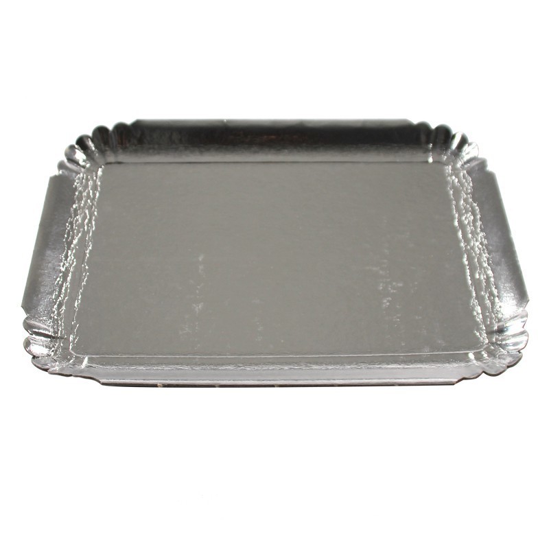 Plateaux argent en carton pelliculé (alimentaire), parfaits pour toute présentation froide de petit fours, apéritifs, desserts, sushis...