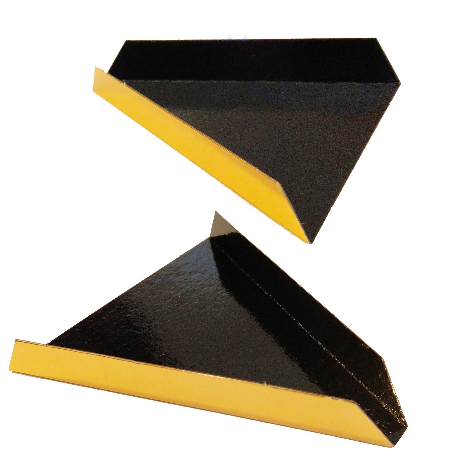 Fond carton triangle double face or et noir rainé pour la présentation de vos pâtisseries.