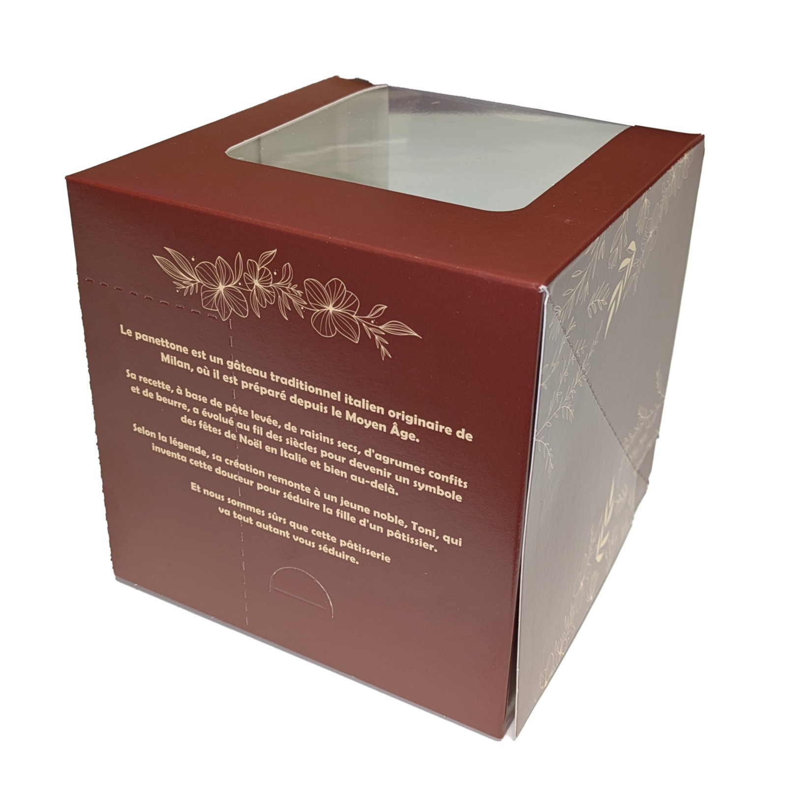 Donnez à vos panettones une présentation soignée et valorisante grâce à cette boîte Panettone avec grande fenêtre cavalière. Conçue pour mettre en lumière la qualité de vos produits, elle combine fonctionnalité, esthétique et respect des contraintes alimentaires.