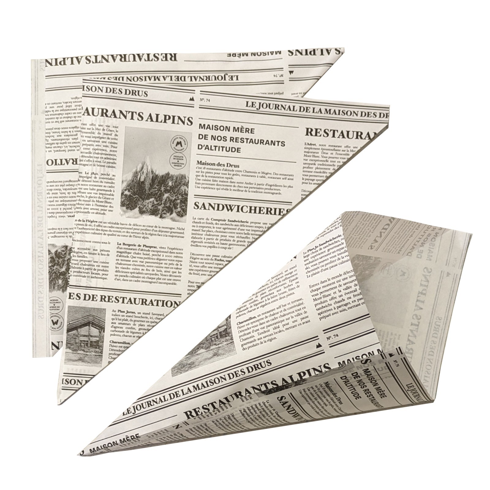 Sachets pour frites, fish & chips ou churros personnalisés en kraft ingraissable blanc ou brun .